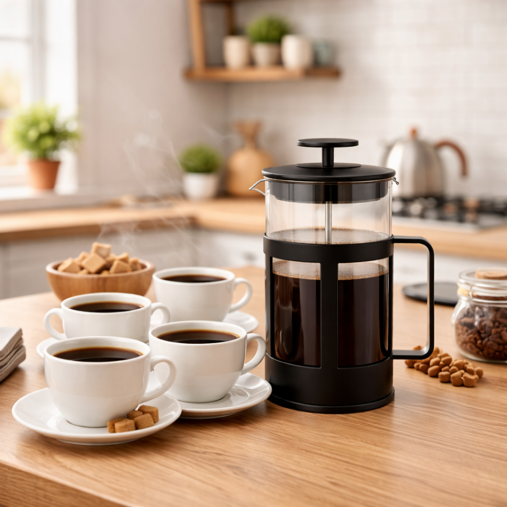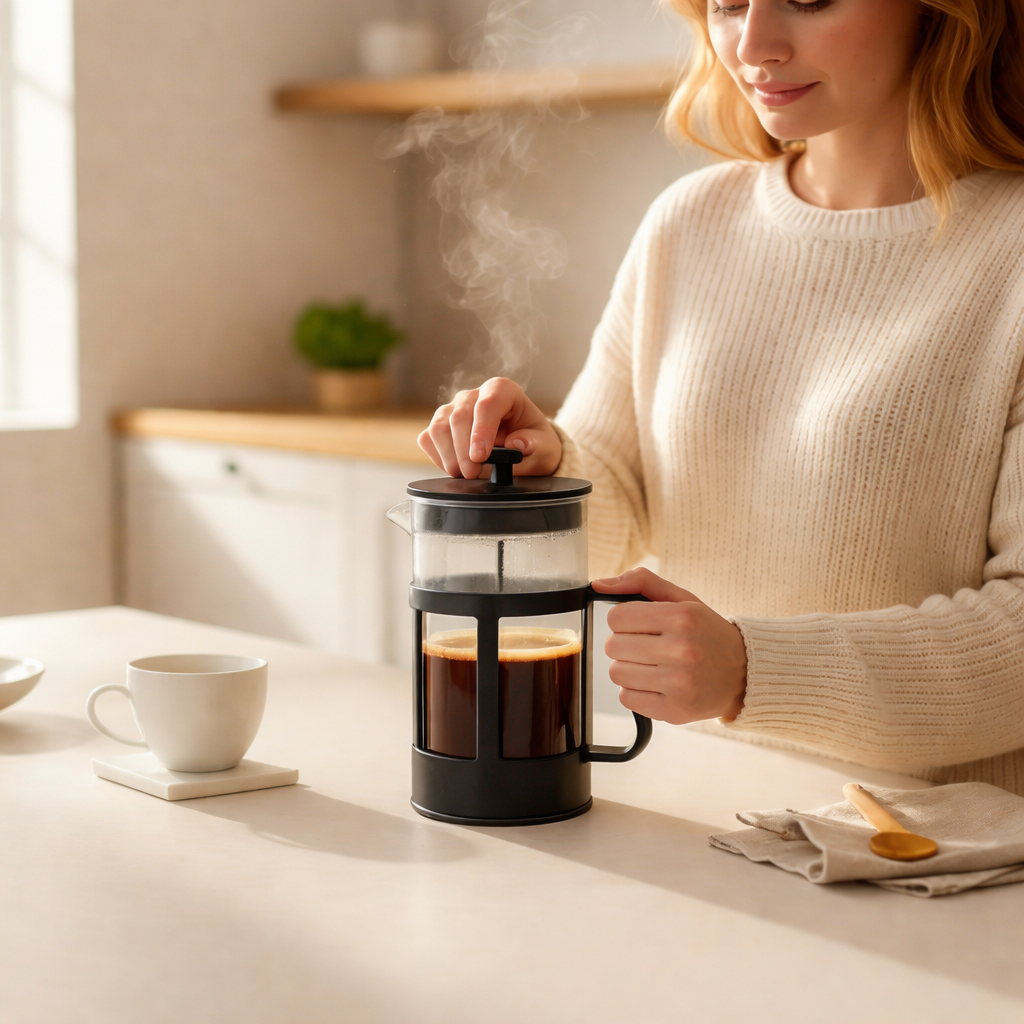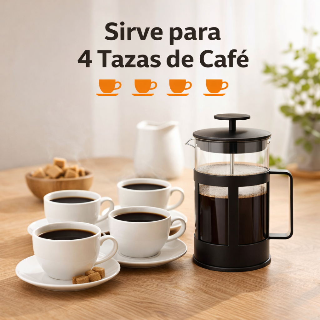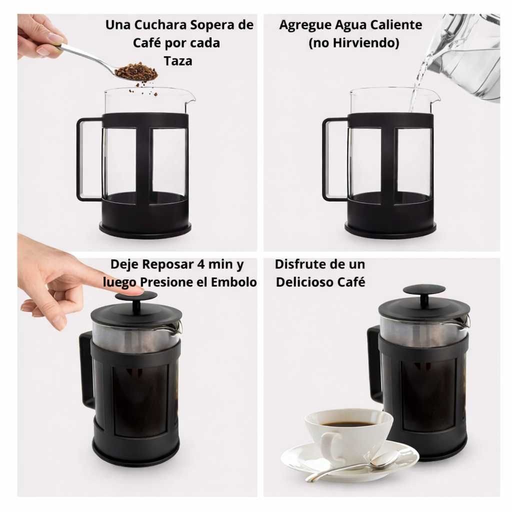 Equipada con émbolo de acero inoxidable y un diseño cómodo para el uso diario, te permite preparar café de manera sencilla y sin esfuerzo. Ideal para disfrutar hasta 4 tazas en una sola prensada.
