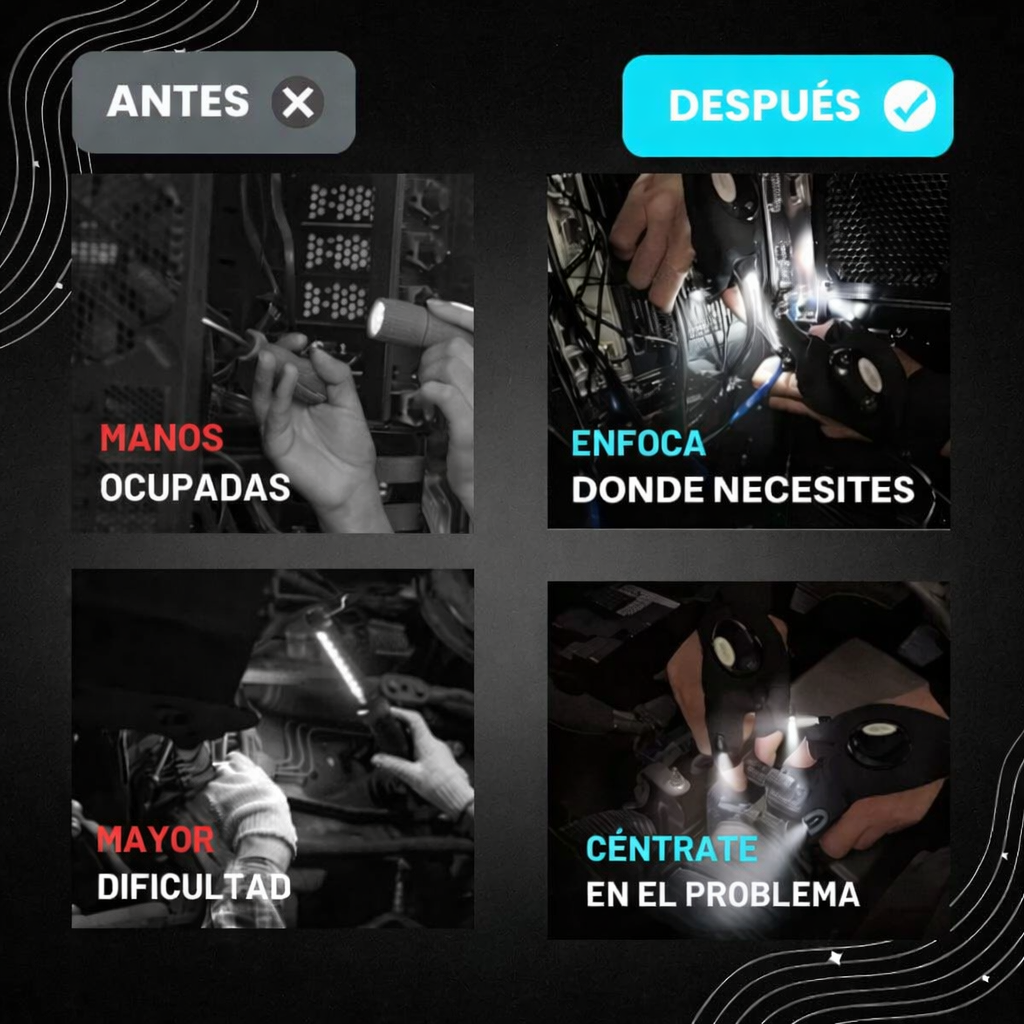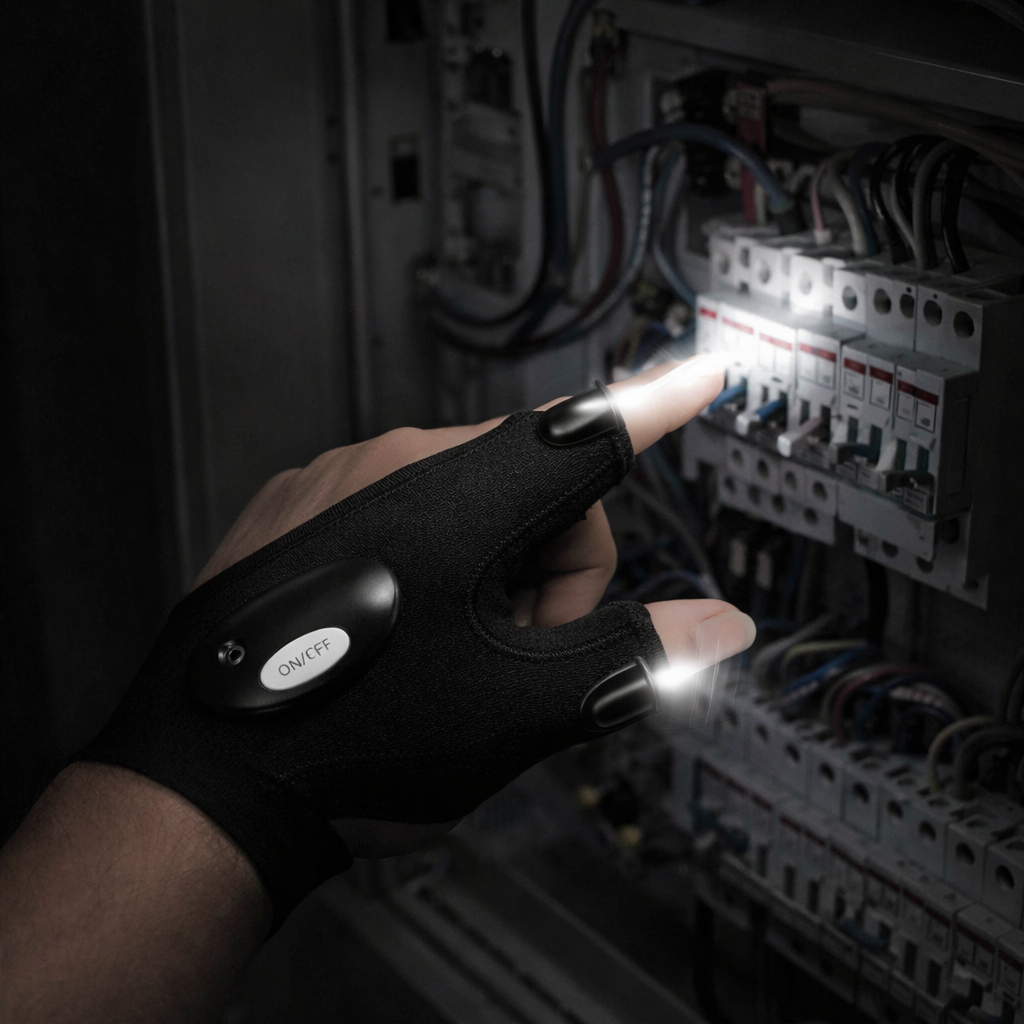 Iluminá tu trabajo sin ocupar las manos con estos guantes con luz LED incorporada, ideales para tareas en lugares con poca iluminación. Perfectos para reparaciones, pesca, camping, bricolaje y trabajos técnicos, te permiten trabajar con mayor precisión y comodidad.