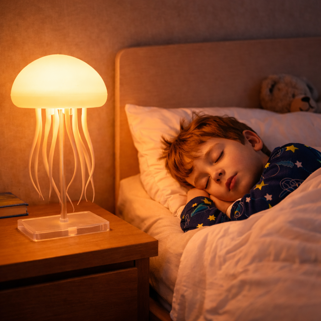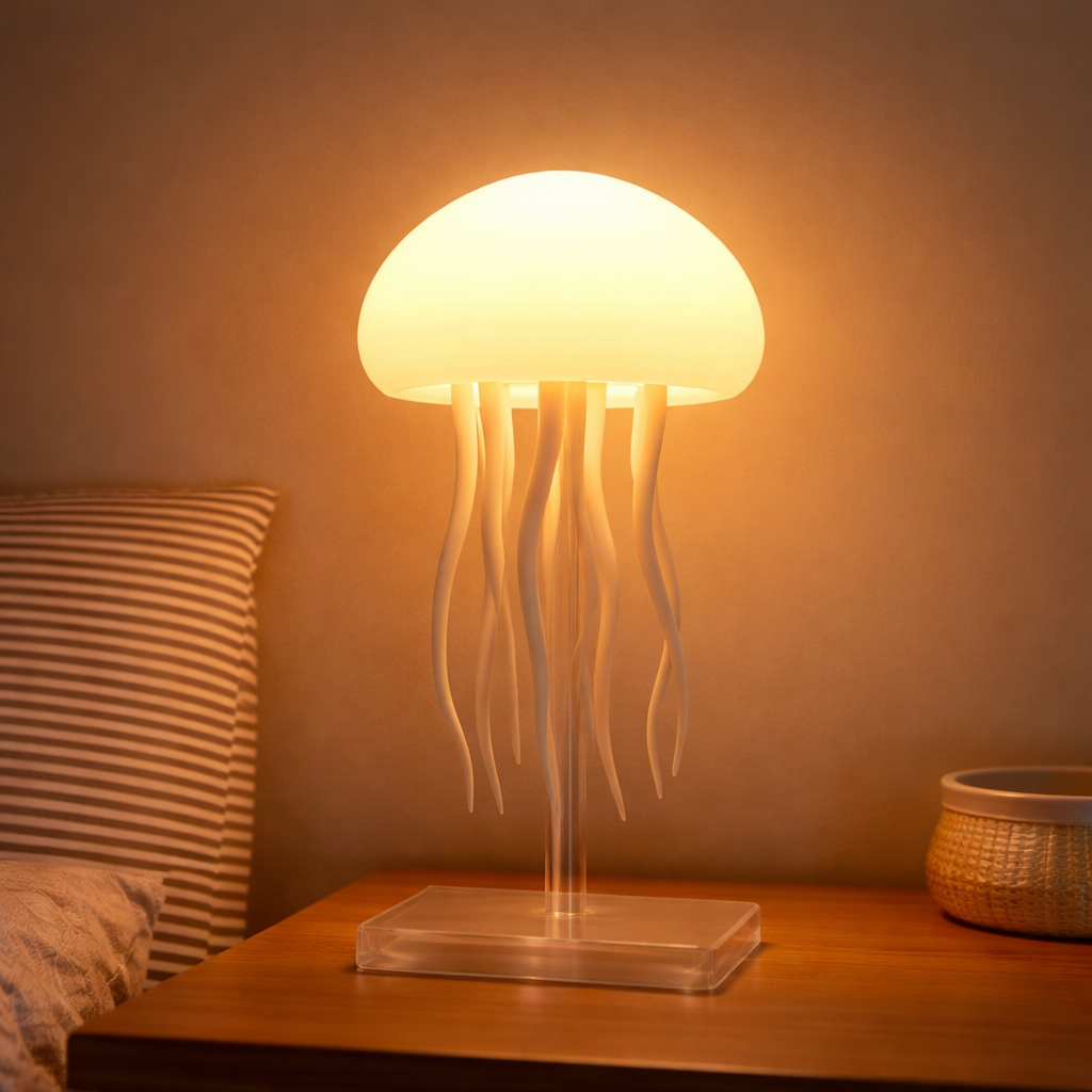 Sus tentáculos móviles imitan el desplazamiento de una medusa en el agua, generando un efecto visual relajante y envolvente. Ideal para momentos de descanso, meditación o decoración chill.