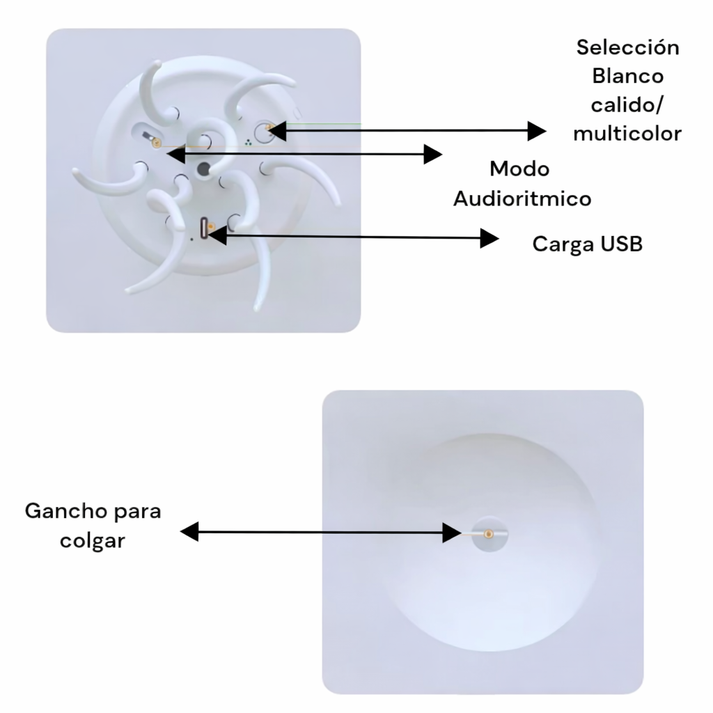 Cuenta con pantalla LED RGB y múltiples modos de luz que transforman cualquier ambiente: luz cálida, colores automáticos, combinaciones con movimiento y hasta modo audiorítmico que reacciona al ritmo de la música o sonidos del entorno.