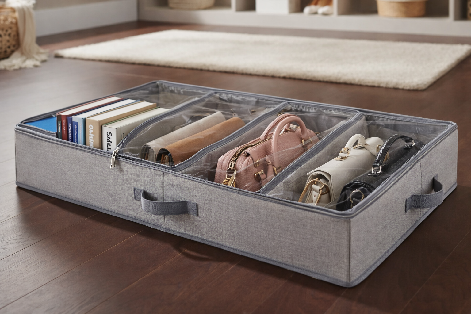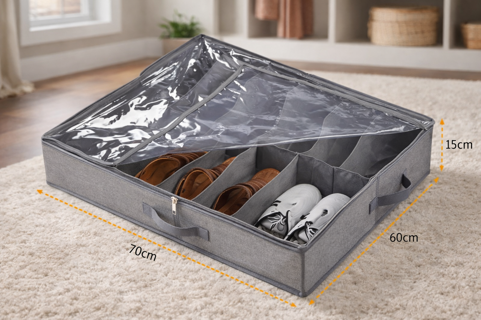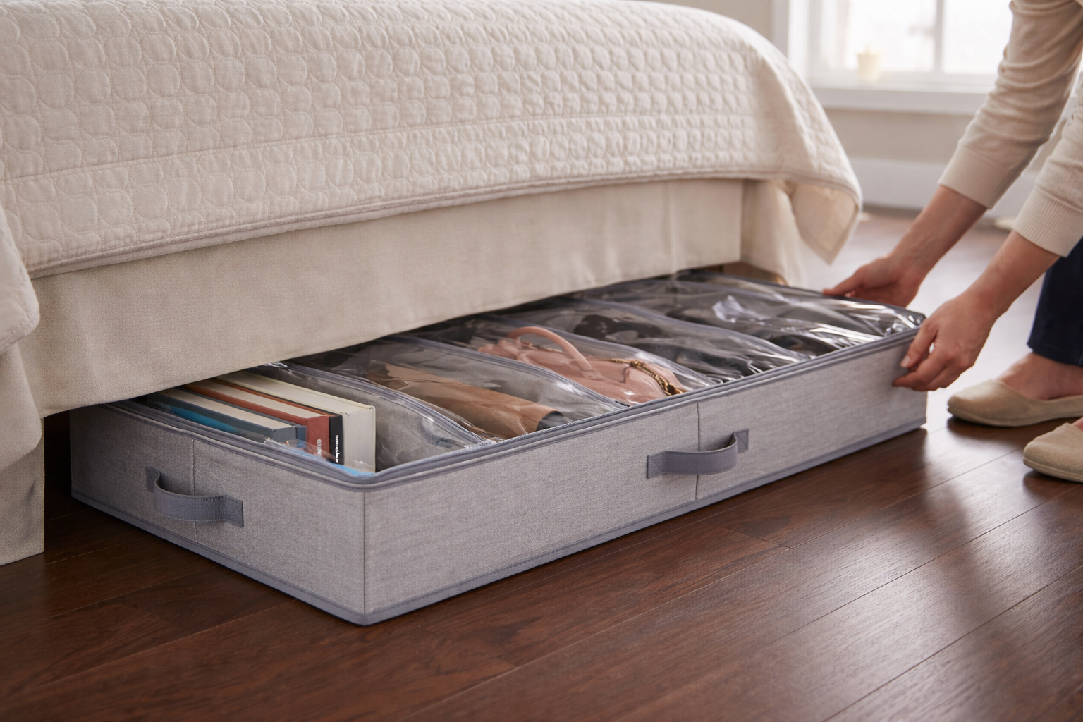 Aprovechá al máximo el espacio de tu hogar con este organizador bajo cama multiuso, ideal para mantener zapatos, zapatillas y accesorios siempre ordenados y fuera de la vista. Práctico, funcional y pensado para espacios reducidos.