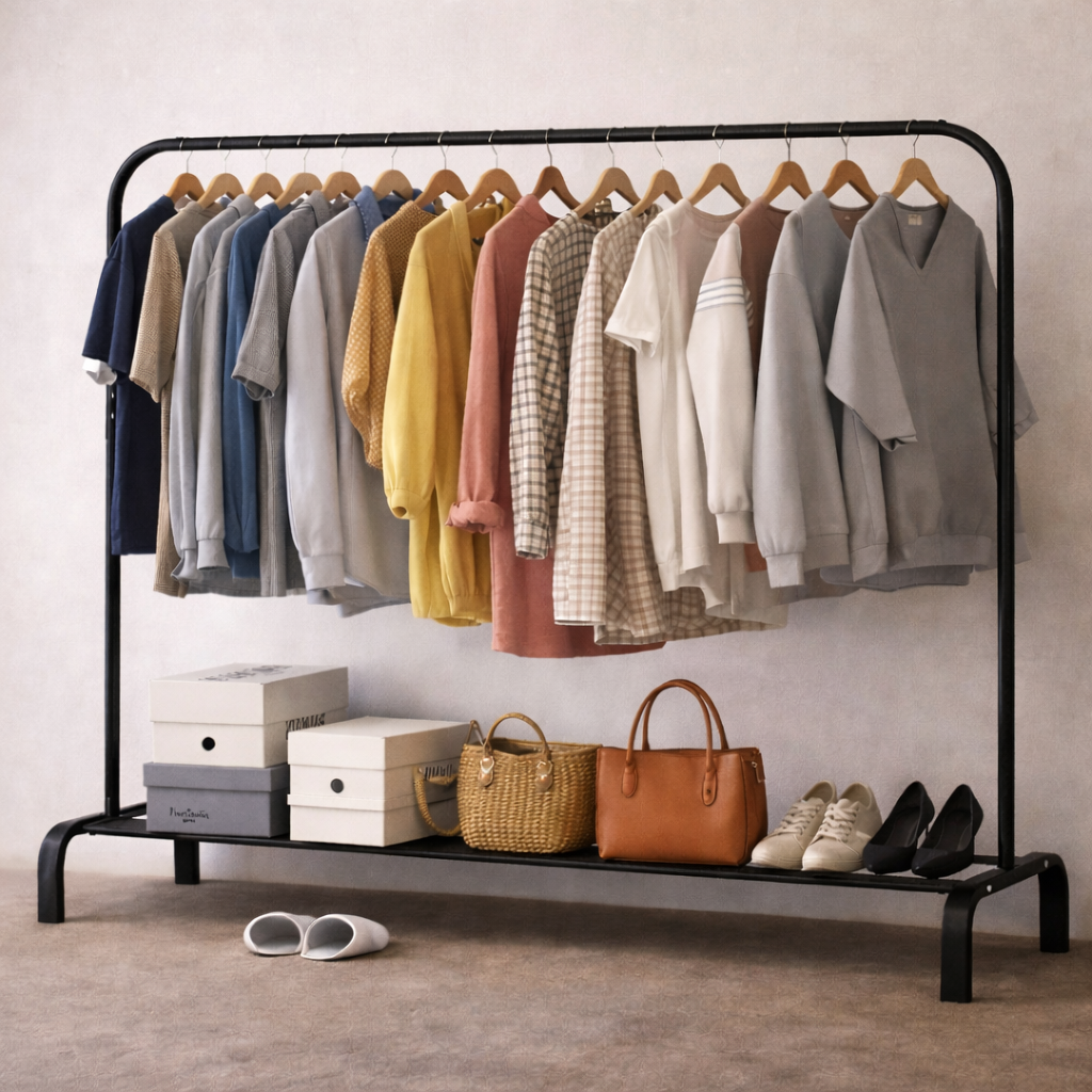 🧥 Un perchero sólido, práctico y profesional para mantener tu ropa y productos siempre bien presentados.