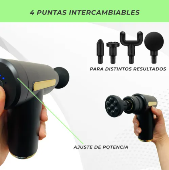Con 8 niveles de velocidad (de 1800 a 3200 rpm) podés adaptar la intensidad según tus necesidades. Su batería de litio de 1800 mAh brinda hasta 4 horas de uso continuo e incluye carga rápida por USB tipo C, lista para acompañarte donde vayas.